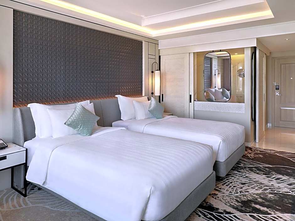 The spacious twin room offers air conditioning, a tea and coffee maker, as well as a private bathroom featuring a walk-in shower and a bidet. The twin room provides a wardrobe, a safe deposit box, a sofa, a flat-screen TV, as well as pool views. The unit offers 2 beds.